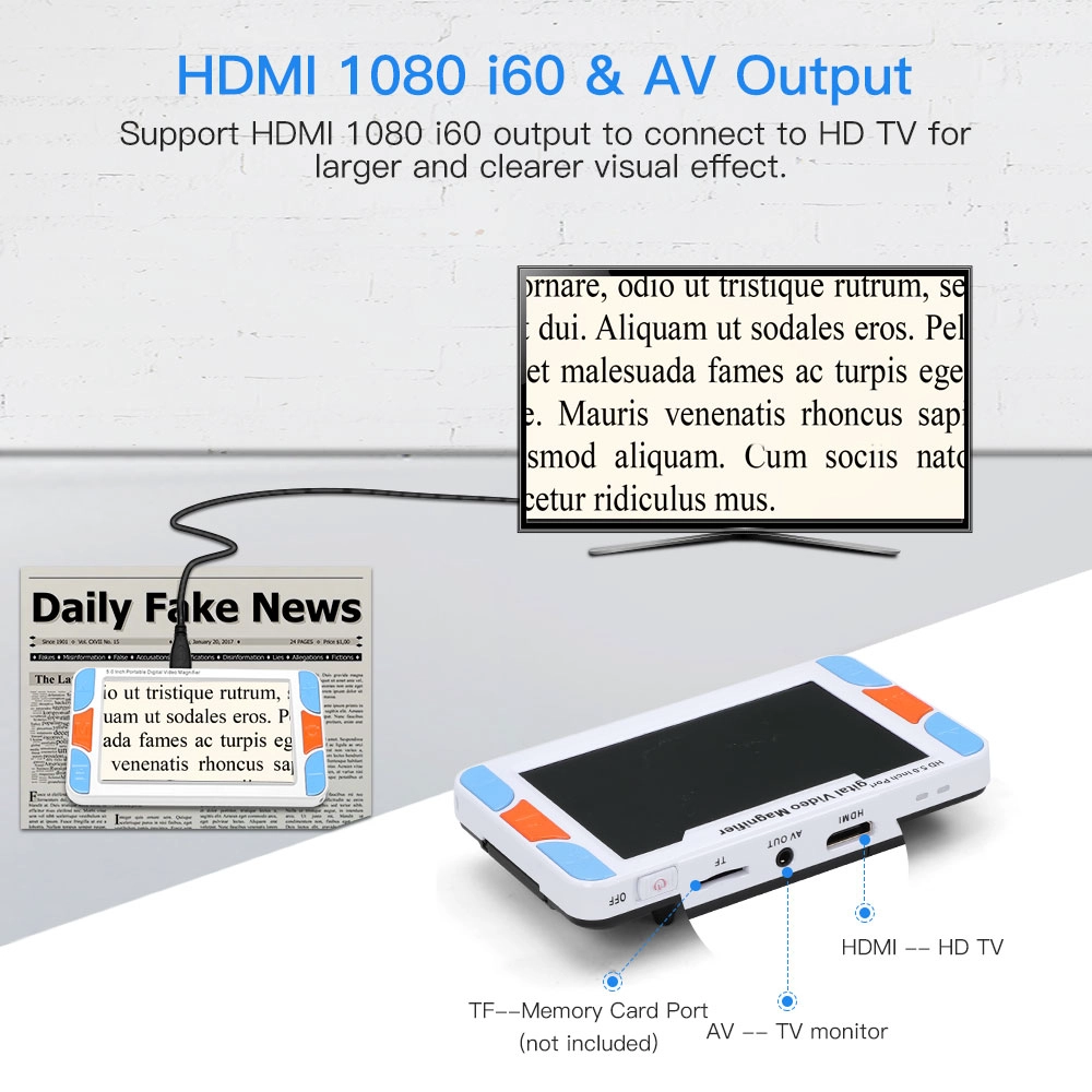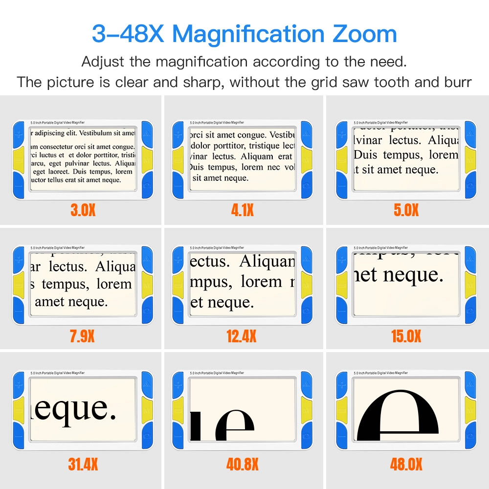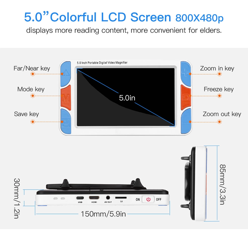 Lente d'ingrandimento portatile per schermo LCD da 5 pollici per visione da lontano e da vicino/ Lente d'ingrandimento digitale tascabile ad alta definizione con lente d'ingrandimento video digitale portatile LCD da 5"/LCD TFT da 5"